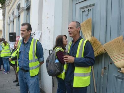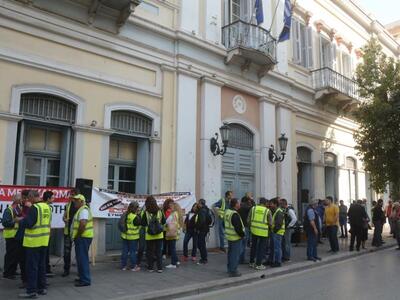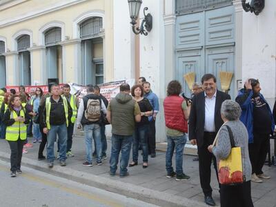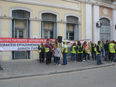 Ο Δήμαρχος Πατρέων, Κώστας Πελετίδης, και ο Αντιδήμαρχος Διοίκησης, Διονύσης Πλέσσας, παραβρέθηκαν σήμερα Τρίτη 8 Μάη, στην κινητοποίηση έξω από το Δημαρχείο των εργαζομένων με σύμβαση ορισμένου χρόνου 8 μηνών στην Καθαριότητα, στον Ηλεκτροφωτισμό και στα Κοιμητήρια. Στην συνέχεια οι εργαζόμενοι πραγματοποίησαν κατάληψη στο κτίριο της Αποκεντρωμένης Διοίκησης.