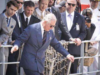 Ο διάδοχος του βρετανικού θρόνου κατέφθασε λίγο μετά πριν τις 12:30 στο λιμάνι του Πειραιά συνοδευόμενος από τη Βρετανίδα πρέσβη στην Ελλάδα Κέιτ Σμιθ.