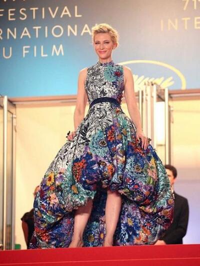 Η πρόεδρος της επιτροπής του σινε-φεστιβάλ των Καννών, η 49χρονη αυστραλέζα σταρ Κέιτ Μπλάνσετ συνεχίζει να μονοπωλεί τα φλας στην ηλιόλουστη γαλλική λουτρόπολη. Μετά την τελετή έναρξης η περιβολή που «έσκισε» σε εντυπώσεις προκαλώντας πολλά δημοσιεύματα ήταν η άκρως εντυπωσιακή δημιουργία της διάσημης και πολυβραβευμένης ελληνίδας σχεδιάστριας Mary Katrantzou στο κόκκινο χαλί της ταινίας «Cold War». Όπως μαθεύτηκε, η άνθινη balloon τουαλέτα χρειάστηκε έξι ολόκληρους μήνες για να φτιαχτεί.