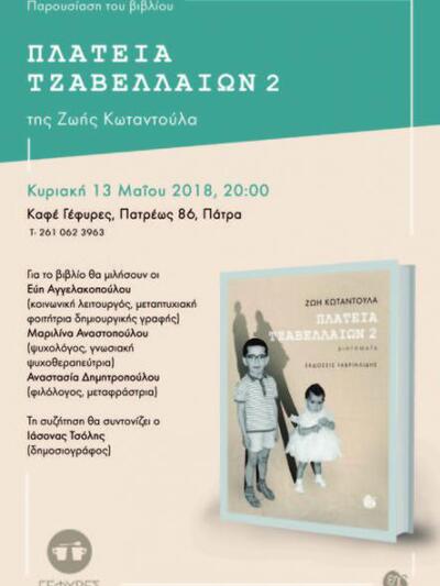 Παρουσίαση του βιβλίου Πλατεία Τζαβελλαίων 2 της Ζωής Κωταντούλα στο καφέ Γέφυρες
