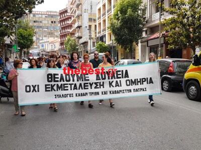 Παράσταση διαμαρτυρίας στα γραφεία του ΣΥΡΙΖΑ έκαναν στις 10.45 εργαζόμενες στην καθαριότητα των σχολείων της Πάτρας. Στη συνέχεια φωνάζοντας συνθήματα πραγματοποίησαν πορεία στη Γούναρη.