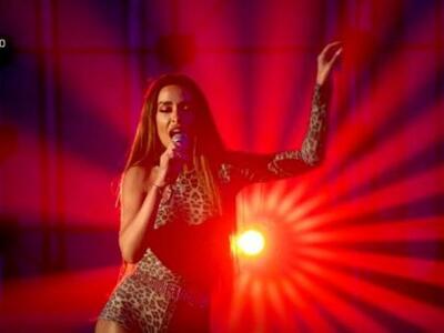 Η εκρηκτική και σέξι καλλιτέχνιδα φορώντας ένα super hot τιγρέ κορμάκι που άφηνε ακάλυπτο το ένα της πόδι και πλαισιωμένη από Ισπανούς χορευτές, ξεσήκωσε τους θεατές τραγουδώντας το «Fuego» στο δημοφιλές χορευτικό σώου Fama A Bailar της Ισπανικής τηλεόρασης