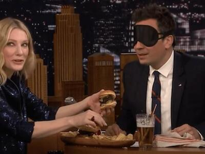 Βρέθηκε λοιπόν καλεσμένη του Τζίμι Φάλον στο «Tonight Show», σε μία βραδιά που όλο το αμφιθέατρο ήταν γεμάτο από στρατιώτες, ναύτες και αεροπόρους. Η λαμπερή, ταλαντούχα και πανέξυπνη ηθοποιός δεν τα έχασε αλλά αντιθέτως φλέρταρε, γέλασε, έπαιξε παιχνίδια, κέρασε μπέργκερς και ήπιε την μπύρα της. Μακιγιαρισμένη, στολισμένη και έτοιμη να μπει σε αεροπλάνο για την επόμενη στάση της περιοδείας της για την ταινία, αποδέχθηκε την πρόκληση του Φάλον να παίξουν 4 γύρους ρωσικής ρουλέτας με αβγά: από τη 12άδα, 8 αβγά ήταν σφιχτά και 4 μελάτα. Διαλέγεις ένα στην τύχη και... δοκιμάζεις την τύχη σου, σπάζοντάς το στο κεφάλι σου. Η Μπλάνσετ πάντως στάθηκε τυχερή!