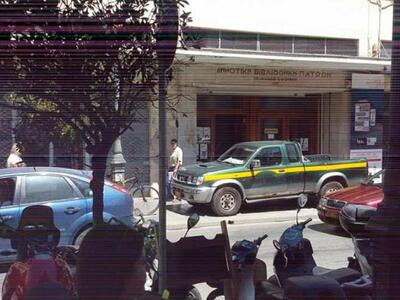Αυτοκίνητο του Δήμου Πατρέων, δεν ξέρουμε προς το παρόν για ποιο λόγο, βρίσκεται πάνω στο πεζοδρόμιο, στην οδό Μαιζωνος, μεταξύ Φιλοποίμενος και Βότση, μπροστά ακριβώς από την είσοδο της Δημοτικής Βιβλιοθήκης.