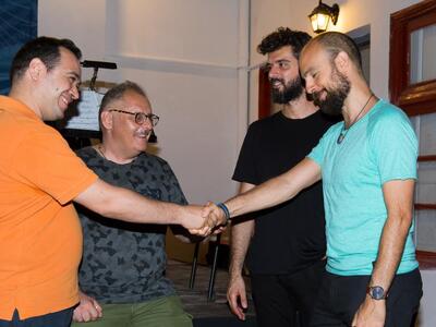 Η συναυλία άρχισε με ένα εκφραστικό σόλο του κοντραμπασίστα Πέτρου Κλαμπάνη και μετά οι εκλεκτοί μουσικοί συνοδοιπόροι του ανέβηκαν στη σκηνή. Ο διάσημος πιανίστας και συνθέτης Shai Maestro, γεννημένος στο Ισραήλ και με έδρα τη Νέα Υόρκη και το υπέροχο κουαρτέτο εγχόρδων αποτελούμενο από τους Γιάννη Μαυρίδη (βιολί), Νίκο Μαυρίδη (βιολί), Αλέξανδρο Σμαγκούλοβ (βιόλα) και Αλέξανδρο Μποτίνη (βιολοντσέλο) αλλά και την Ελευθερία Δαουλτζή (κανονάκι) που έδωσαν έντονο άρωμα Πάτρας στην εκδήλωση, μαζί με τον Πέτρο Κλαμπάνη αποτέλεσαν τη «μαγιά» για το τελικό σπουδαίο αποτέλεσμα.