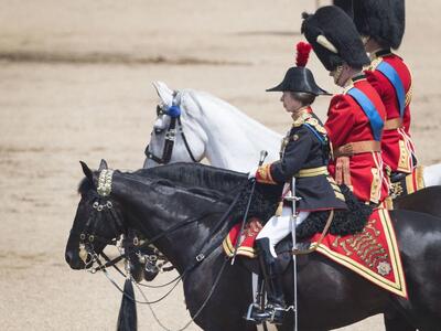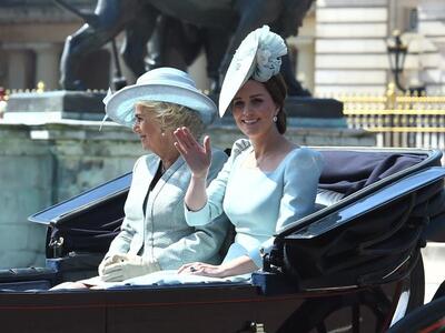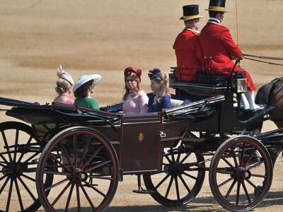 Έφτασε μέσα σε μια άμαξα, μόνη αφού ο σύζυγός της Φίλιππος δεν παρέστη στις εκδηλώσεις. Ο φωτογραφικός φακός την «έπιασε» να κοιτά με γλυκύτητα τους γιους της πρίγκιπα Κάρολο και πρίγκιπα Ανδρέα αλλά και τον εγγονό της πρίγκιπα Γουίλιαμ, που έφτασαν στο παλάτι καλπάζοντας με τα άλογά τους και φορώντας τις στρατιωτικές στολές τους. Μαζί τους και η πριγκίπισσα Άννα, κόρη της Ελισάβετ.