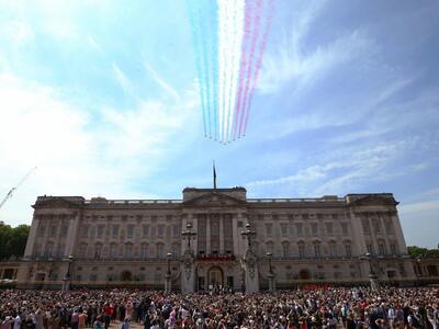 Μπορεί η Βασίλισσα να έκλεισε τα 92 της χρόνια τον περασμένο Απρίλιο αλλά παραδοσιακά οι εορτασμοί με τη μεγάλη στρατιωτική παρέλαση και τις πτήσεις μαχητικών της RAF πάνω από το παλάτι γίνονται Ιούνιο. Έτσι, το Σάββατο (09.06.2018) σύσσωμη η βασιλική οικογένεια και το νέο της μέλος Μέγκαν Μαρκλ, εμφανίστηκαν στο μπαλκόνι του Μπάκιγχαμ. Απουσίαζε ο πρίγκιπας Φίλιππος, σύζυγος της Ελισάβετ, ο οποίος έχει αποσυρθεί από τις δημόσιες εμφανίσεις.