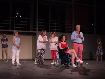 Το βράδυ της περασμένης Πέμπτης, η Κατερίνα Βρανά έκανε την πρώτη της δημόσια εμφάνιση και καταχειροκροτήθηκε ότανσηκώθηκε από το αναπηρικό αμαξίδιο για να ευχαριστήσει τον κόσμο στις κερκίδες και τα σκαλιά του ΒΕΑΚΕΙΟΥ θεάτρου στον Πειραιά.