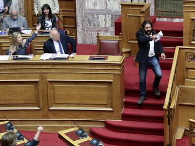 Το συμβάν σημειώθηκε στη διάρκεια της σύζήτησης της πρότασης μομφής που κατέθεσε η ΝΔ.