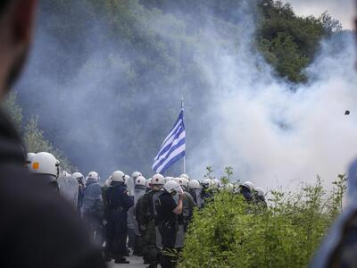 Στόχος τους να περάσουν για να φτάσουν στο χωριό Ψαράδες όπου υπογράφεται η συμφωνία για το «Βόρεια Μακεδονία». Οι συγκρούσεις με τις ισχυρές δυνάμεις των ΜΑΤ ήταν αναπόφευκτες.