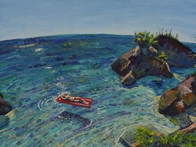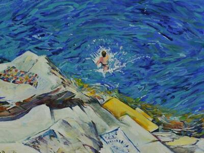 Μια … «χορταστική» βουτιά και ένα «αφ’ υψηλού» αγνάντεμα σε απάνεμα γαλαζοπράσινα, ιριδίζοντα νερά, από εκείνα που μας ξελογιάζουν και μας γαληνεύουν στο περίφημο ελληνικό καλοκαίρι, απεικονίζουν οι καινούριοι πίνακες του γνωστού συμπολίτη ζωγράφου και εκπαιδευτικού εικαστικών τεχνών Ντένη Παντελή, οι οποίοι θα ταξιδέψουν σύντομα στον πλέον κοσμοπολίτικο προορισμό του Αιγαίου. Συγκεκριμένα, θα εκτεθούν στην αίθουσα Συριώτη, της Δημοτικής Πινακοθήκης Μυκόνου με τον τίτλο «Lost Tracks» από 11 έως 20 Ιουλίου.