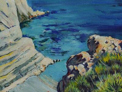 Είναι σημαντικό για εμένα να έχω προσωπικές αναμνήσεις και εμπειρίες από το κάθε μέρος που θα ζωγραφίσω και έτσι στις διακοπές μου προσπαθώ να κρατώ (εκτός από φωτογραφίες, σκίτσα) και την αίσθηση που ένιωθα σε αυτό το μέρος. Πολλά από αυτά τα μέρη τα επισκέπτομαι πολλές φορές και σε διαφορετικές ώρες μέσα στην ημέρα. Έτσι προσπαθώ αργότερα να αναπαράγω την αίσθηση του ανοιχτού φωτεινού τοπίου, όχι όμως από την οπτική γωνία που θα είχε κάποιος που βρίσκετε εκεί αλλά από ψηλά.