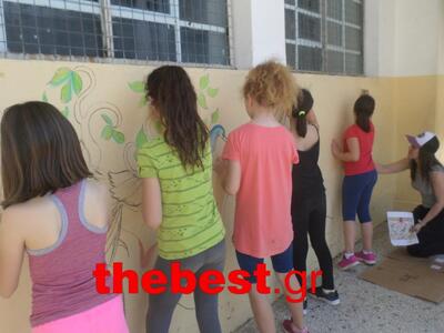 Τέλος οι μικροί μαθητές επιδόθηκαν και σε γκράφιτι καθώς ζωγράφισαν τοίχο του σχολείου τους, με τις συμβουλές της δασκάλας εικαστικών Αγγελικής Παπαμιχαήλ.