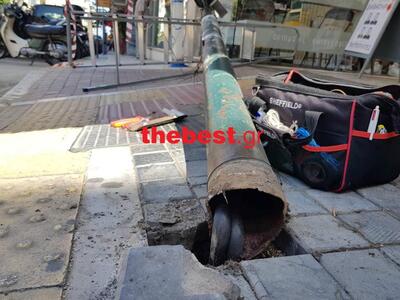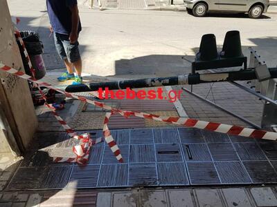 Ευτυχώς η σήμανση από αστυνομικούς στο σημείο με ερυθρόλευκη κορδέλα απέτρεψε ενδεχόμενο ατύχημα, καθώς το φανάρι έπεσε και απέκλεισε το πεζοδρόμιο.
