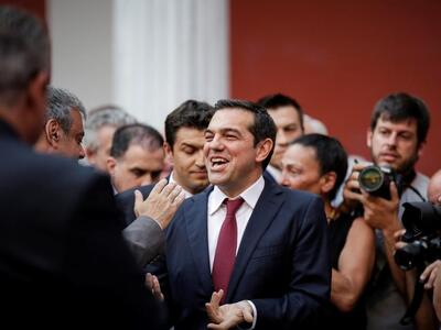 «Τα στοιχήματα είναι για να υλοποιούνται. Έχω δυσκολία, αλλά θα το συνηθίσω» είπε ο πρωθυπουργός, φορώντας την βαθυκόκκινη γραβάτα του, για να απευθυνθεί στις Κοινοβουλευτικές Ομάδες του ΣΥΡΙΖΑ και των ΑΝΕΛ, στην πιο αισιόδοξη συνάθροιση βουλευτών τα τελευταία χρόνια, στο αίθριο του Ζαππείου.