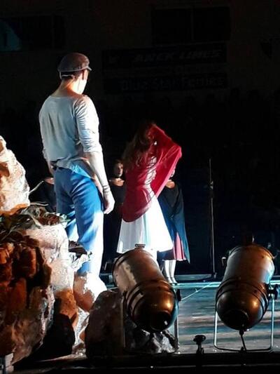 Το κλειστό γήπεδο της ΕΑΠ, στο οποίο μεταφέρθηκε η παράσταση λόγω του κακού καιρού, αποδείχθηκε μικρό για τον αριθμό των πατρινών που ήθελαν οπωσδήποτε να παρακολουθούν την πολυσυζητημένη μεταφορά της ελληνικής ταινίας στο θεατρικό σανίδι.