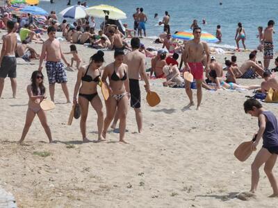 • Παίζουμε ρακέτες, μπιτς βόλεϊ και άλλα παιχνίδια της άμμου μακριά από ψάθες και ομπρέλες. Αν αυτό δεν είναι εφικτό λόγω συνωστισμού, τότε απλώς δεν παίζουμε.
