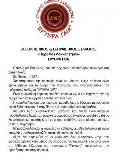 Η Περιφέρεια Δυτικής Ελλάδας σε συνεργασία με τον Πολιτιστικό Σύλλογο παραλίας Λακκόπετρας «ΕΡΥΘΡΑ ΓΑΙΑ» και τον Δήμο Δυτικής Αχαΐας οργανώνουν επιστημονική ημερίδα με τίτλο: «Ποιότητα Πόσιμου Νερού», η οποία θα πραγματοποιηθεί την Τρίτη 10 Ιουλίου 2018 και ώρα 19:30, στον πολυχώρο εκδηλώσεων TERRA ROSSA, στην παραλία Λακκόπετρας.