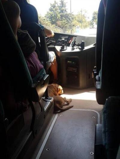 Oδηγός τοπικού λεωφορείου παίρνει μαζί του τον τετράποδο αδέσποτο φίλο του λόγω καύσωνα ώστε να αράζει χαλαρός στο air condition.
