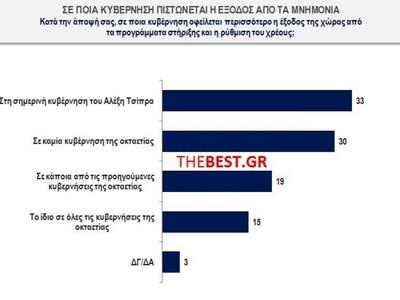 Το 33% των ερωτηθέντων πιστώνει στην κυβέρνηση Τσίπρα την έξοδο από τα μνημόνια.