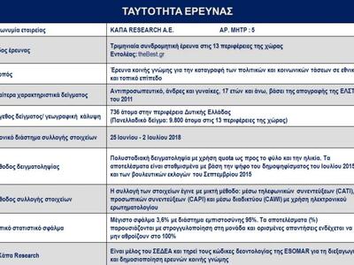 Πάντως η διαφορά στη Δυτική Ελλάδα παραμένει στα ίδια επίπεδα που είχε καταγραφεί σε αντίστοιχη έρευνα της ίδιας εταιρίας, στο τέλος του 2017 (δείτε εδώ εκείνη τη δημοσκόπηση).