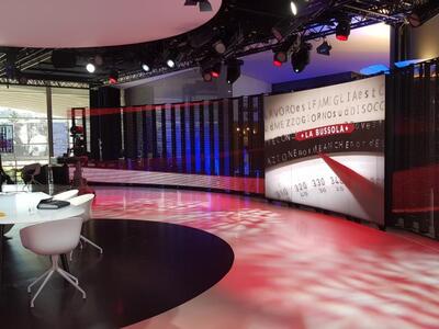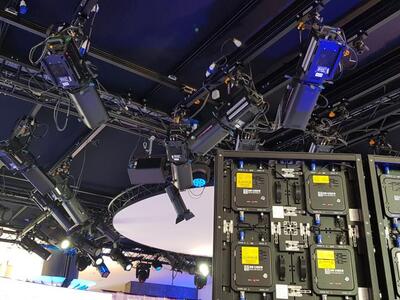 Το Inytium (ομάδα οπτικοακουστικών μέσων που ανέλαβε την εγκατάσταση του μηχολογικού τεχνολογικού εξοπλισμού) παρείχε τόσο παραδοσιακές τετράγωνες γέφυρες όσο και εγκάρσιες σιδηροτροχιές που είναι ειδικές για τη βιομηχανία ραδιοτηλεοπτικών εκπομπών. Οι οθόνες LED ηψηλής απόδοσης που κινούνται πάνω σε σιδηροτροχιές μπορούν να δεχθούν κάθε δυνατή εικόνα, ενώ υποστηρίζονται με άλλη μια σιδηροτροχιά στοιχείων led με κενά μεταξύ τους για τη δημιουργία οπτικών εφέ είτε σε συνδυασμό είτε μεμονομένα, για το φόντο των τηλεοπτικών εκπομπών που καταγράφονται εκεί.