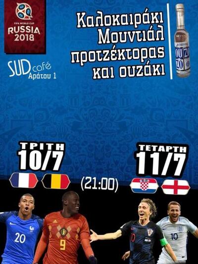 Τρίτη βράδυ στις 9:00 Γαλλία-Βέλγιο και Τετάρτη βράδυ στις 9:00 Κροατία-Αγγλία!