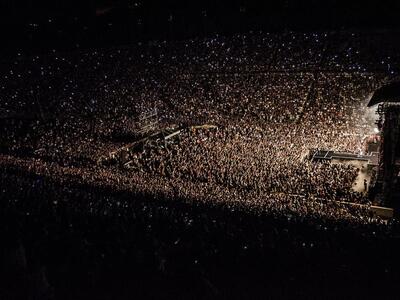 O Μάινε είπε ότι είναι τιμή του να παίζει σε αυτό το στάδιο, καλωσορίζοντας στη σκηνή την ΚΟΑ, που υπό τη διεύθυνση του Στέφανου Τσιαλή, ερμήνευσαν ορχηστρικά το «Days of glory».