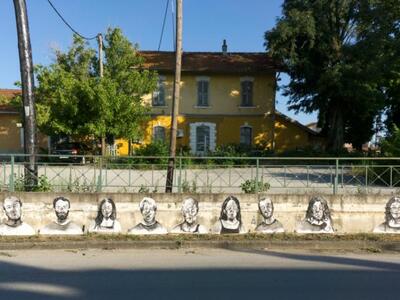 Σήμερα, απέναντι από το κτίριο του σταθμού, σε έναν τοίχο που εκτείνεται σε μήκος περίπου 100 μέτρων, βλέπει κάποιος ασπρόμαυρες προσωπογραφίες νεαρών αντρών και γυναικών, με αποτυπωμένη τη χαρά, την θλίψη, τον ενθουσιασμό η την γκριμάτσα στην έκφραση του προσώπου.