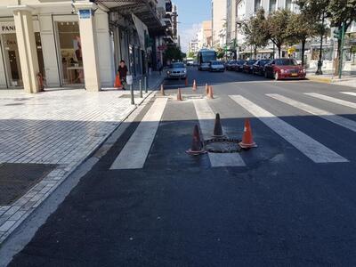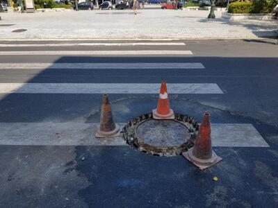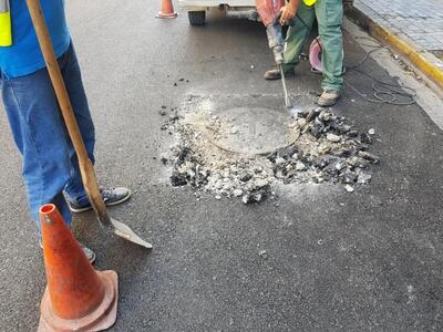 Από την Τρίτη ξεκίνησαν εργασίες εξυγίανσης και λείανσης των επιφανειών περιμετρικά των καπακιών των υπονόμων.