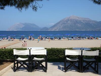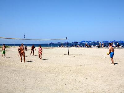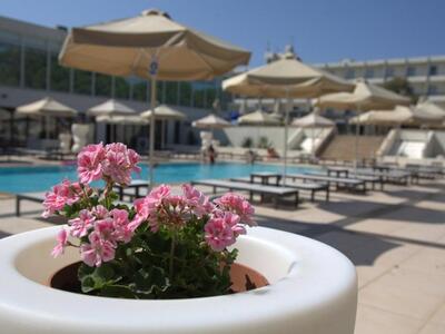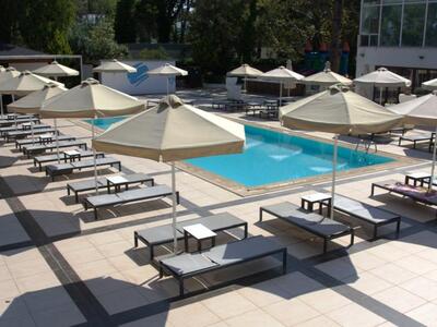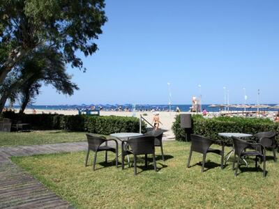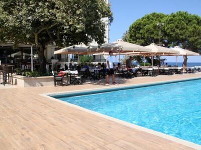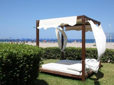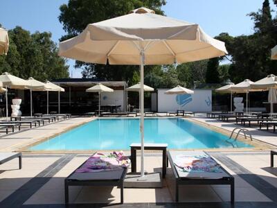 Ένας χώρος προσβάσιμος από την θάλασσα (την οδό Ποσειδώνος) και το ξενοδοχείο, με μεγάλο πάρκινγκ, μέσα στο πράσινο με φυσική σκιά, ομπρέλες, άνετες ξαπλώστρες και μεγάλα κρεβάτια δίπλα στην παραλία με τις πισίνες στα πόδια μας.