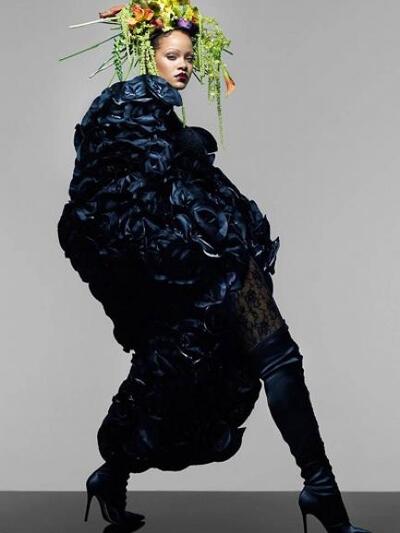 Στο εξώφυλλο η 30χρονη δημοφιλέστατη και πολυβραβευμένη τραγουδίστρια και fashion icon από τα Μπαρμπέιντος φοράει ένα φόρεμα Prada από τούλι και ένα body του δικού της brand μόδας και ομορφιάς Fenty. Στις άλλες της φωτογραφίες τη βλέπουμε με αβάν γκαρντ λουλουδένιο φόρεμα Noir Kei Ninomiya και μπότες Gianvito Rossi, ένα υπέροχο σμόκιν σακάκι με μεταξωτά «τελειώματα» Alexander Mc Queen καθώς και μια δημιουργία Lowe. Mια άνθινη «περικεφαλαία» του Makoto Azuma κάνει τη μεγάλη διαφορά στο όλο concept. Oπως αναφέρει ο Enninful πάντως όσο πρωτοποριακή και πειραματική κι αν ήταν η όλη εικόνα, εκείνη παραμένει η πραγματική φαντασίωση, καθώς η προσωπικότητά της ξεπερνάει τη δυναμική κάθε μεταμόρφωσης. Η ίδια η Rihanna έγραψε στο Instagram: «Επιτέλους συνεργάστηκα με τον @nick_knight για πρώτη φορά! Μύθος».