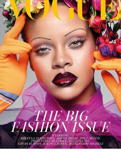 Το τεύχος που θα κυκλοφορήσει από τις 3 Αυγούστου αλλά είναι για το μήνα Σεπτέμβριο, φαντάζει πάρα πολύ πλούσιο σε σελίδες και περιεχόμενο. Αλλωστε, πάντα τα περιοδικά μόδας του Σεπτεμβρίου που εγκαινιάζουν τη νέα φθινοπωρινή σαιζόν είναι τα πιο σημαντικά και ογκώδη από πλευράς θεματικής και περιεκτικότητας. Πλάι στη Rihanna ως βασικά φιλοξενούμενα πρόσωπα του τεύχους παρελαύνουν οι Ελτον Τζον, πριγκίπισσες Βεατρίκη και Ευγενία (κόρες του πρίγκιπα Ανδρέα και της Σάρα Φέργκιουσον) και η περιζήτητη μαύρη βρετανίδα μοντέλο Adwoa Aboah. Τα δημοσιεύματα προώθησης γράφουν όμως και για 400 χορταστικές σελίδες με ό,τι πρέπει να φορέσουμε, να αγοράσουμε και να μας εμπνεύσει, δηλαδή για όλα όσα θα ορίσουν τελικά το φετινό φθινόπωρο.