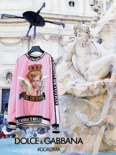 Τουρίστες, κάτοικοι, εργαζόμενοι, καθολικές καλόγριες ποζάρουν πλάι στις «rising stars» Chiara Scelsi, Samile Bermannelli, Aira Ferreira, Hyun Jishin and Sija Titko. Το πληθωρικό βεστιάριο των Dolce e Gabbana πρωταγωνιστεί γεμάτο «extravaganza italiana» ξεπερνώντας με το διάκοσμο και τους μαξιμαλιστικούς συνδυασμούς του περιστασιακές τάσεις της μόδας. Φτερωτοί έρωτες, καρδιές με πετράδια, πάτσγουορκ γραμμάτων και συνθημάτων, άγρια λεοπάρ, μεσογειακές δαντέλες, τούλια, κορσέδες «οπερατικές» περούκες και τα πιο ακραία γυαλιά είναι όλα εδώ. Η Φοντάνα ντι Τρέβι, η Πιάτσα ντι Σπάνια, η Πιάτσα Ναβόνα και το Κολοσσαίο γίνονται μέρος του concept – είναι γνωστή άλλωστε η promo τακτική πατριδολατρίας του brand. Aκόμα και drones για ιπτάμενα φούτερ και τσάντες πάνω από τα μνημεία έχουν επιστρατευτεί. Ετσι οι ομορφιές της μόδας σμίγουν με τις λατρεμένες ομορφιές της Ρώμης με σλόγκαν την αγάπη, δείτε πλάνα και παρασκήνια.