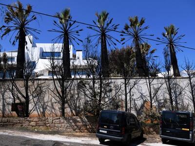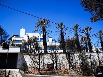 Όμως, όπως προκύπτει από τις φωτογραφίες που έδωσε η Eurokinissi, η καταστροφική φωτιά έφτασε μέχρι το σπίτι του, εκείνο όμως τη γλίτωσε.