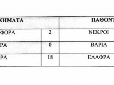 Επίσης κατά το ίδιο χρονικό διάστημα έλαβαν χώρα τα παρακάτω τροχαία ατυχήματα