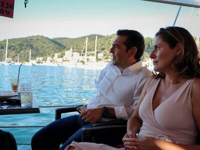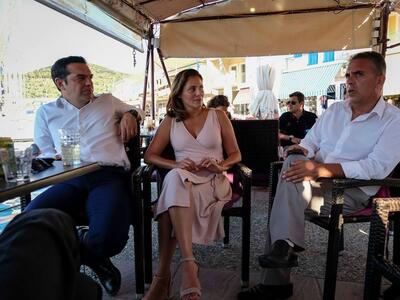Φορώντας ένα ροζ κρουαζέ φόρεμα, με... γενναίο άνοιγμα κάθισε δίπλα στον Αλέξη Τσίπρα στον καφέ που ήπιαν με το δήμαρχο του νησιού, ενώ διακρίνεται και στις φωτό από τη βιντεοσκόπηση του διαγγέλματος, να στέκεται πίσω από τις κάμερες και να παρακολουθεί τον Αλέξη Τσίπρα.