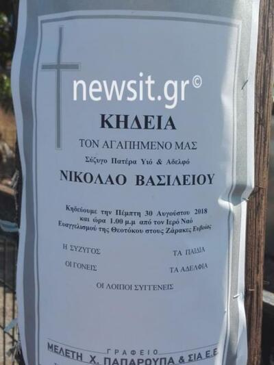 Δεν περιγράφεται ο πόνος και η θλίψη που επικρατεί στο χωρίο του Επισμηναγός Νικόλαος Βασιλείου που πέταξε για τη γειτονιά των Αγγέλων. Η Εύβοια θρηνεί τον πιλότο της Πολεμικής Αεροπορίας.