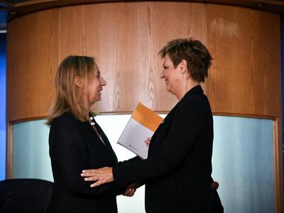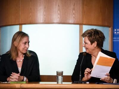 Με μαύρο φόρεμα η μία και με ένα μπορντό φόρεμα η άλλη, οι κυρίες Όλγα Γεροβασίλη και Κατερίνα Παπακώστα αντίστοιχα ανέλαβαν τα ηνία του υπουργείου Προστασίας του Πολίτη.