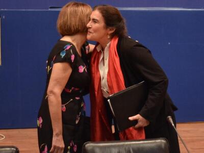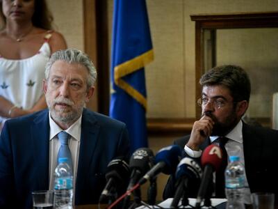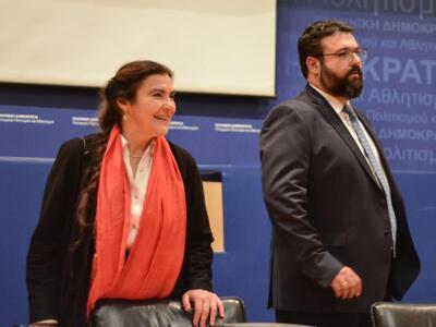 Στο Υπουργείο Πολιτισμού και Αθλητισμού η Λυδία Κονιόρδου παρέδωσε στην υπουργό: Μυρσίνη Ζορμπά. Εκεί ήταν και ο Υφυπουργός Αθλητισμού, Γιώργος Βασιλειάδης