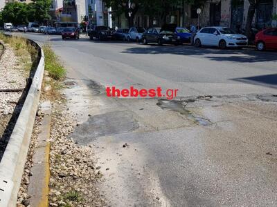 Ενα μικρός συντριβάνι εμφανίστηκε την Τρίτη στην Όθωνος Αμαλίας και αναβλύζει νερό στη μέση του δρόμου. Το οδόστρωμα έχει φθαρεί σημαντικά στο σημείο και το νερό - που προφανώς προέρχεται από σπαμένο υπόγειο αγωγό ύδρευσης - συμβάλει ακόμη περισσότερο στην αποσάθρωση του υποστρώματος του δρόμου.