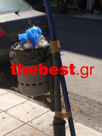 Δέθηκε πάνω στο καλαθάκι απορριμμάτων με πλαστικό σφιγκτήρα κι ούτε γάτα - ούτε ζημιά.