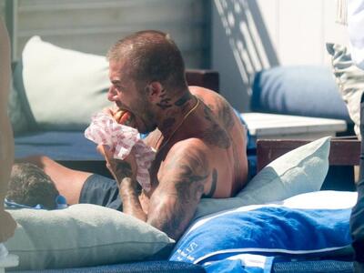 Δες τις φωτογραφίες όπου ο Ντέιβιντ, απολαμβάνει τον ήλιο αλλά και ένα χάμπουργκερ με πατάτες στον ήλιο του Μαϊάμι και ο φωτογραφικός φακός, εστιάζει στα…. αραιά του μαλλιά