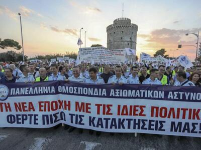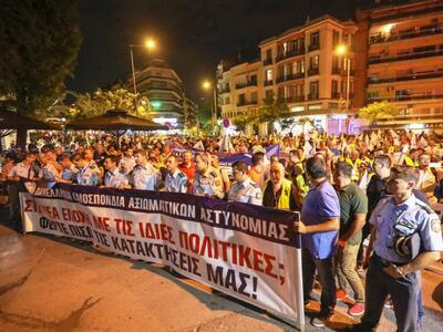 Συγκέντρωση και πορεία διαμαρτυρίας σε κεντρικούς δρόμους της Θεσσαλονίκης πραγματοποίησαν το απόγευμα της Παρασκευής αστυνομικοί, πυροσβέστες και λιμενικοί - εν ενεργεία και απόστρατοι - ανταποκρινόμενοι στο κάλεσμα που απηύθυναν ομοσπονδίες και ενώσεις των Σωμάτων Ασφαλείας, με αφορμή τα εγκαίνια της 83ης ΔΕΘ. Το «ραντεβού» των ένστολων δόθηκε στις 6 το απόγευμα στον Λευκό Πύργο, όπου ακολούθησαν ομιλίες των συνδικαλιστικών τους εκπροσώπων.