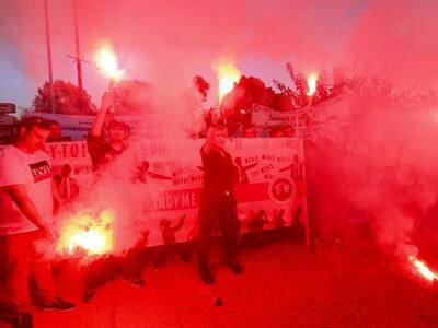Στη συνέχεια, οι συγκεντρωθέντες - πολλοί εξ αυτών έφτασαν στη Θεσσαλονίκη από διάφορες περιοχές της Ελλάδας - συγκροτήθηκαν σε πορεία και κρατώντας πυρσούς, κόρνες και σφυρίχτρες κινήθηκαν προς το ΥΜΑ-Θ, όπου ολοκλήρωσαν την κινητοποίησή τους.