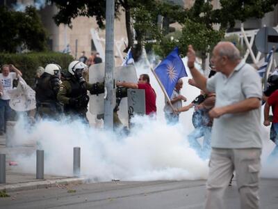 Ομάδα διαδηλωτών, που συμμετέχει συλλαλητήριο που διοργάνωσαν οι Παμμακεδονικές Ενώσεις και οι Επιτροπές Αγώνα για την Μακεδονία, αποσπάστηκε από την πορεία και επιχείρησε να προσεγγίσει το δημαρχιακό μέγαρο. Αστυνομικές δυνάμεις τους παρεμπόδισαν, κάνοντας χρήση χειροβομβίδων κρότου κάμψης και χημικών με αποτέλεσμα να διασπαστούν και να αποχωρήσουν.