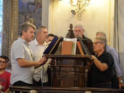 ● Στὸν Ἑσπερινὸ ἐχοροστάτησε ὁ Σεβασμιώτατος Μητροπολίτης Πατρῶν κ.κ. Χρυσόστομος, συγχοροστατοῦντος τοῦ Θεοφιλεστάτου Ἐπισκόπου Κερνίτσης κ. Χρυσάνθου.