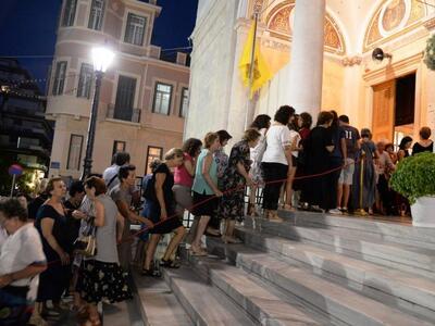 Καθ’ ὅλη τὴν διάρκεια τῆς νύκτας ἀσταμάτητο ἦτο τὸ προσκύνημα πρὸς τὴν Ὑπεραγία Θεοτόκο, ἐνῶ ἐτελεῖτο ἡ Ἱερὰ Ἀγρυπνία.