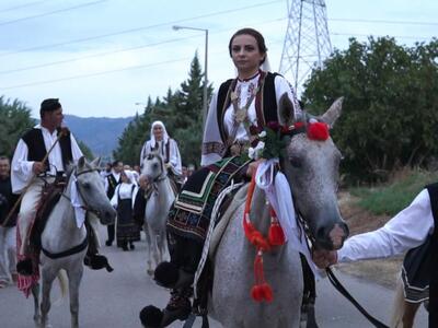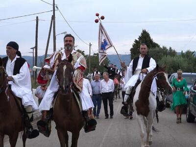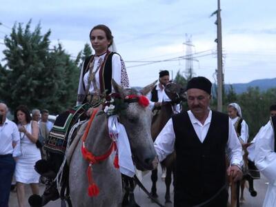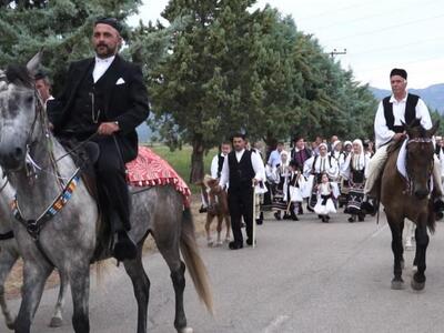 Το σκηνικό στήθηκε στο κεντρικό δρόμο στην είσοδο του χωριού, όπου τον γαμπρό συνόδευαν ο «μπράτιμος», αδελφικός φίλος που κρατούσε το φλάμπουρα, και οι άλλοι βλάμηδες (μπράτιμοι) όλοι καβαλάρηδες.