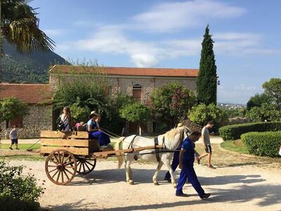 Έκπληξη που ξετρέλλανε τους μικρούς τρυγητές ήταν η βόλτα στο Κτήμα με τον Τσίλια, στην σούστα του!